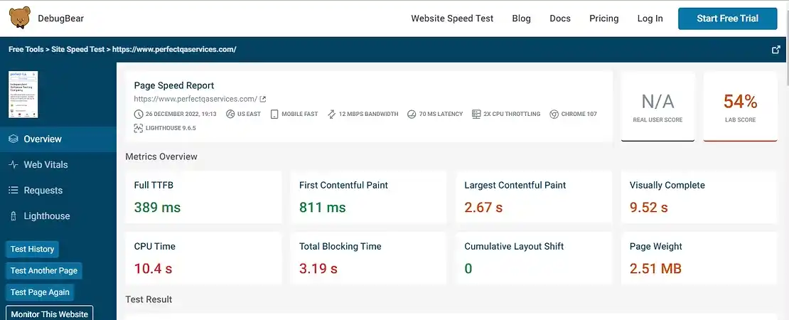 It is essential to track website swiftness and core web vitals. DebugBear tool enables performance tracking and automatically finds issues on your website portal and highlights the information you require to fix.